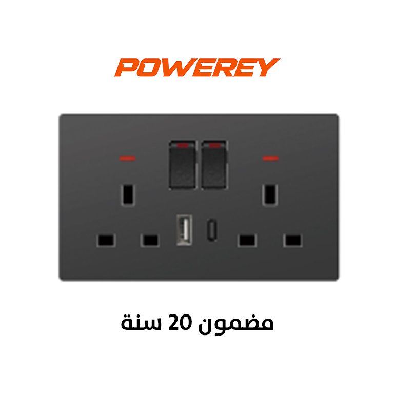 Powerey Switche 2 gang 13A socket+USB+Type C ( Bold ) BLACK