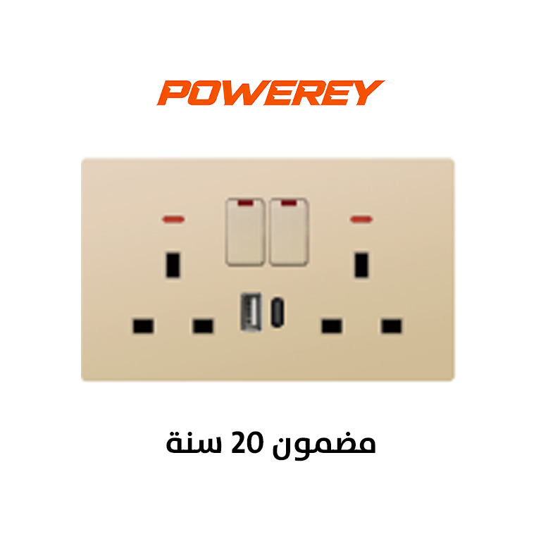 Powerey Switche 2 gang 13A socket+USB+Type C ( Bold ) gold
