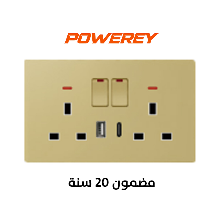 Powerey Switche 2 gang 13A socket+USB+Type C ( Essential ) gold