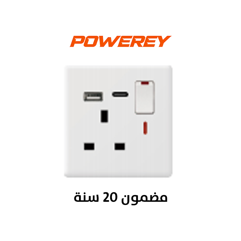 Powerey Switche 1 gang 13A socket+USB+Type C ( Ultra thin ) white