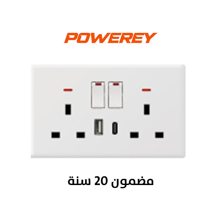 Powerey Switche 2 gang 13A socket+USB+Type C ( Ultra thin ) white